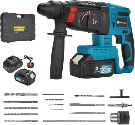 Cordless Electric Hammer Drill, 21V High Power, With 17 Pieces Accessories Bit Set, for Metal Concrete & Wood Drilling, With Two Lithium Batteries-Blue Color 299.00ر.س 265.00ر.س