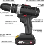 Be the first to review “48V Cordless Drill Set, Electric Drill with 2 Batteries and Charger, Electric Screwdriver Power Drill Drivers with 2 Speed, 25 Torque Setting, Built-in LED Light,Storage Case Included” Cancel reply