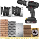 【48 Voltage & 2 Variable Speeds】: Higher voltage means more torque-spinning strength to overcome resistance. This 2 variable-speed cordless drill, with an adjustable clutch gives you the versatility for drilling different materials and using a variety of bits. The low speed is for driving screws, the high speed is for drilling holes.